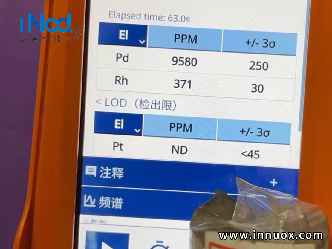 若是手持式光譜儀檢測結果“Pt”鉑元素含量結果為“ND<45ppm” ,那么就是“為檢測到樣品中存有鉑元素含量”,若是有鉑元素的存在,那么含量就會在百分比0到45之間,“<LOD”還將收到樣本密度與厚度以及窗口覆蓋程度所影響,若是測試很薄的樣品,我們可以通過窗口前添加更多樣品來減少原本的“<lod< font="">”的數(shù)量,增加返回探測器的X射線量讓結果更加準確。