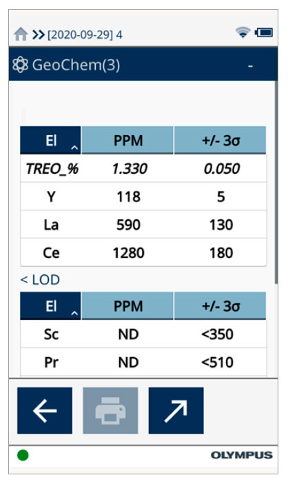 使用奧林巴斯Vanta手持式XRF光譜儀上的偽元素功能,可以在現(xiàn)場(chǎng)實(shí)時(shí)計(jì)算TREO的含量。在檢測(cè)過程中,儀器可以完成所有計(jì)算,如圖4所示。