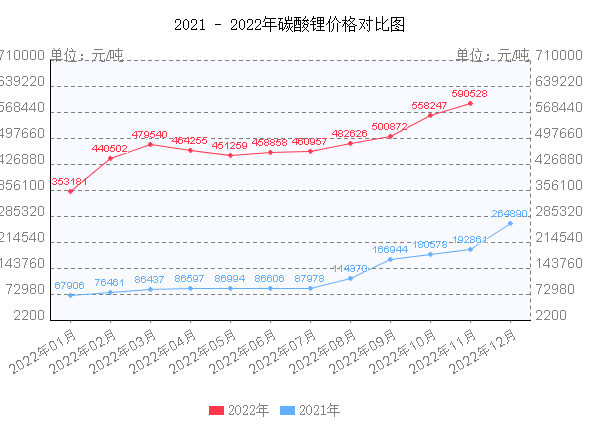 2022年以來,多數(shù)鋰項目都在推遲投產(chǎn)進(jìn)度,在上游鋰資源短期內(nèi)無法大量釋放的前提下,今年第四季度,碳酸鋰需求相當(dāng)堅實,現(xiàn)貨點單極少,市場低價貨源難尋,惜售情緒高漲,市場供應(yīng)持續(xù)緊張,不斷推動碳酸鋰價格上漲。