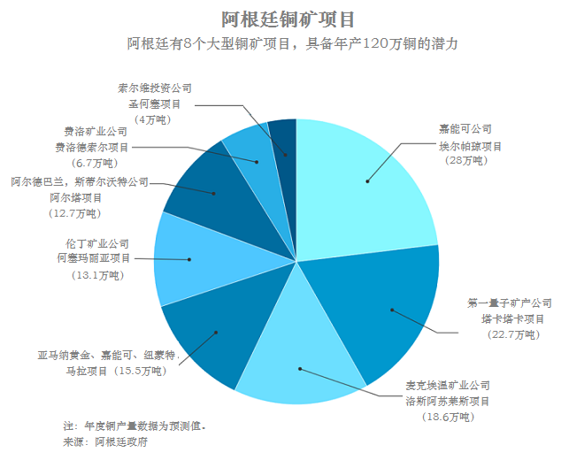 阿根廷政府預(yù)測(cè),這個(gè)南美國(guó)家擁有的銅礦項(xiàng)目可支撐其在2030年產(chǎn)銅79.3萬噸,雖然低于最大產(chǎn)銅國(guó)智利,但是接近澳大利亞和贊比亞的產(chǎn)量。