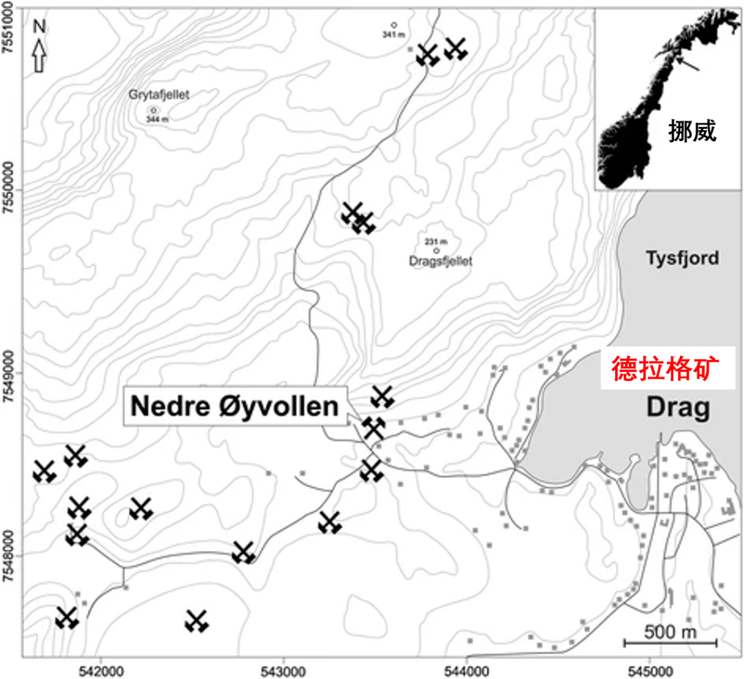 在斷裂帶北段也發(fā)現(xiàn)了克瓦維克(Kvalvik)熱液脈石英礦,推斷資源量70萬(wàn)噸,其礦石質(zhì)量與內(nèi)索登礦類似,可用作高純石英原料。