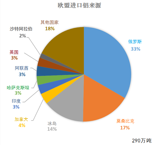 不同的是,原鋁進口主要來自俄羅斯,同期年均33%的原鋁進口來自俄羅斯。其他的主要供應國為莫桑比克,占17%,冰島另外占14%。