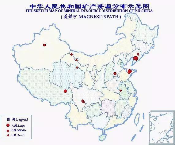 中國是世界上菱鎂礦資源最為豐富的國家。總保有儲(chǔ)量礦石30億噸,居世界第1位。我國菱鎂礦的重要特點(diǎn)是地區(qū)分布不廣、儲(chǔ)量相對(duì)集中,大型礦床多。探明儲(chǔ)量的礦區(qū)27處,分布于9個(gè)?。▍^(qū)),以遼寧菱鎂礦儲(chǔ)量最為豐富,占全國的85.6%。