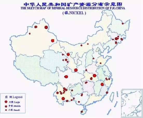 中國鎳礦資源不能滿足需要。總保有儲(chǔ)量鎳784萬噸,居世界第9位。鎳礦產(chǎn)地有近100處,分布于18個(gè)省(區(qū))。