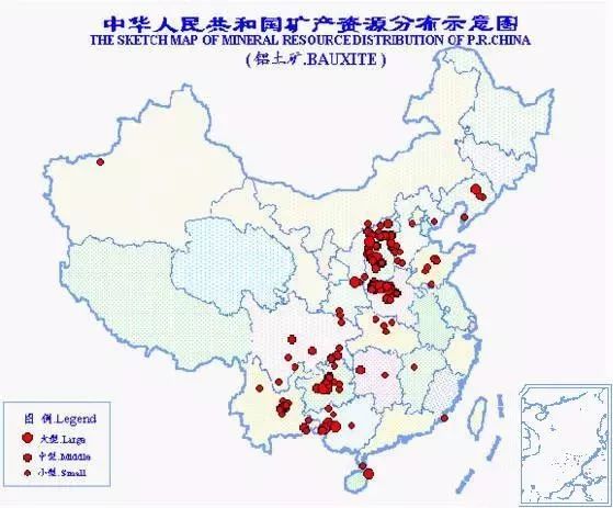 中國鋁土礦資源豐度屬中等水平,產(chǎn)地310處,分布于19個(gè)省(區(qū))??偙S袃?chǔ)量礦石22.7億噸,居世界第7位。