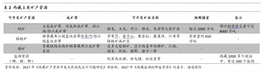 西藏位于亞洲板塊和印度板塊的碰撞地帶,兩大板塊碰撞造山而發(fā)生的成礦作用使西藏?fù)碛袠O為豐富的礦產(chǎn)資源。據(jù)西藏自治區(qū)人民政府官網(wǎng)顯示,西藏目前已發(fā)現(xiàn)的礦種(亞種)達(dá)到103種,其中銅、鉻金屬保有資源儲量與鹽湖鋰資源遠(yuǎn)景儲量位居全國第一。據(jù)自然資源部的估計,西部蘊藏著我國65%的銅資源、59%的鋅資源和55%的鉛資源。