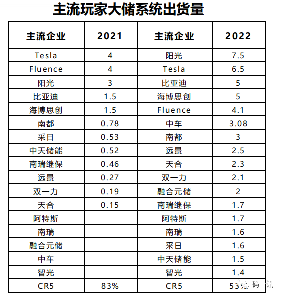 市場已形成一超多強格局,2023年頭部企業(yè)的儲能出貨量角逐進入20+GWh