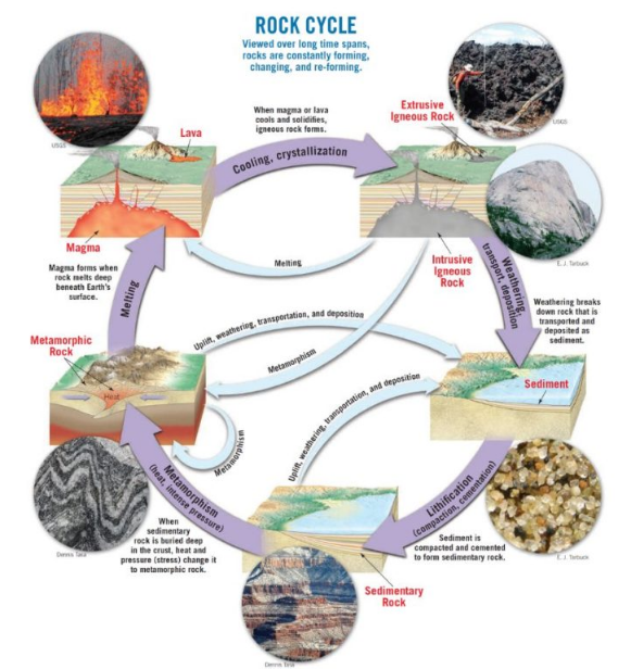 巖石的誕生:巖石是由礦物或礦物質(zhì)的天然聚合物組成。它們通過一系列地質(zhì)過程形成,始于巖石循環(huán)。這個循環(huán)包括三種主要類型的巖石:火成巖、沉積巖和變質(zhì)巖?;鸪蓭r源自于熔融巖漿,可以是在地表以下冷卻而成的(侵入巖)或在地表上凝固而成的(噴發(fā)巖)。沉積巖是由沉積物積累和壓實而形成的。而變質(zhì)巖是指之前存在的巖石經(jīng)歷了高溫高壓作用,發(fā)生了變質(zhì)。