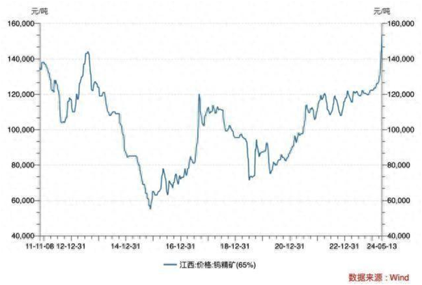 4月以來(lái),被譽(yù)為“工業(yè)牙齒”的金屬鎢價(jià)持續(xù)走高。據(jù)Wind數(shù)據(jù)統(tǒng)計(jì),5月13日,江西地區(qū)65%品位的鎢精礦均價(jià)達(dá)到了15.35萬(wàn)元/噸,相比4月1日12.65萬(wàn)元/噸的價(jià)格,上漲了21.34%,較年初上漲25.58%,創(chuàng)下了自2013年以來(lái)的新高。