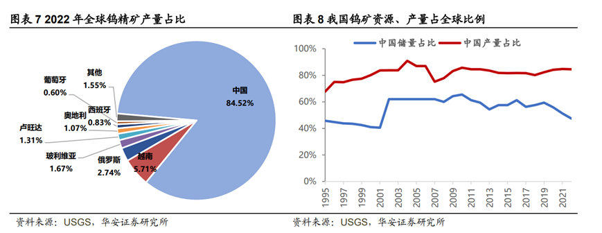 全球鎢礦資源較豐富,但成礦相對(duì)集中,鎢礦儲(chǔ)量和產(chǎn)量集中在少數(shù)國(guó)家。