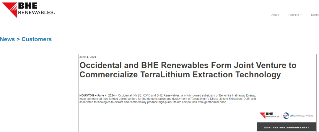 美東時間4日,巴菲特重倉持股的西方石油公司與巴菲特旗下的伯克希爾哈撒韋能源公司(BHE)宣布成立一家合資企業(yè),用于部署TerraLithium的直接鋰提?。―LE)技術(shù)及相關(guān)技術(shù),以從地熱鹵水中提取和商業(yè)化生產(chǎn)高純度鋰化合物。