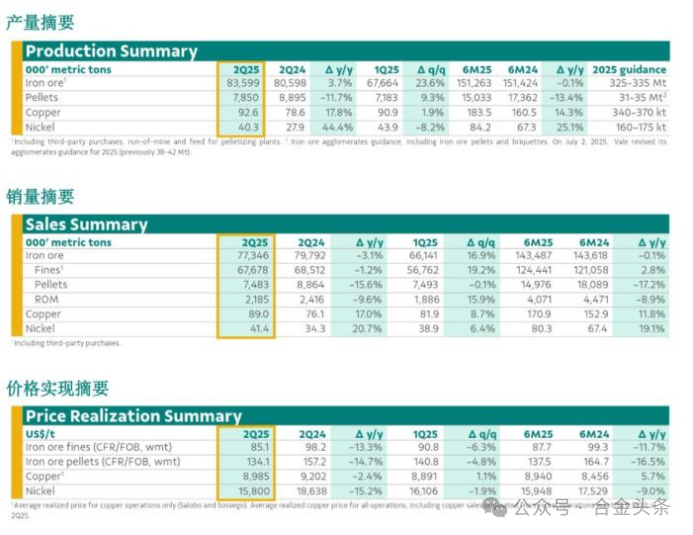 當?shù)貢r間22日,總部位于巴西里約熱內(nèi)盧的礦業(yè)巨頭淡水河谷發(fā)布2025年第二季度產(chǎn)銷量報告稱,報告指出,鐵礦石業(yè)務(wù)方面,新資產(chǎn)逐步增產(chǎn),運營可靠性不斷提升,這些將支持公司更順利地完成2025年生產(chǎn)計劃。
