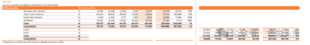 必和必拓2026財年(2025.07-2026.06)鐵礦石目標指導(dǎo)量2.84-2.96億噸(100%基準)。