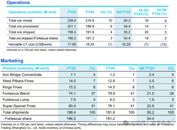 7月24日,澳大利亞礦業(yè)公司福德士河發(fā)布2025年第二季度(2025澳大利亞財年Q4)運營報告,報告顯示: